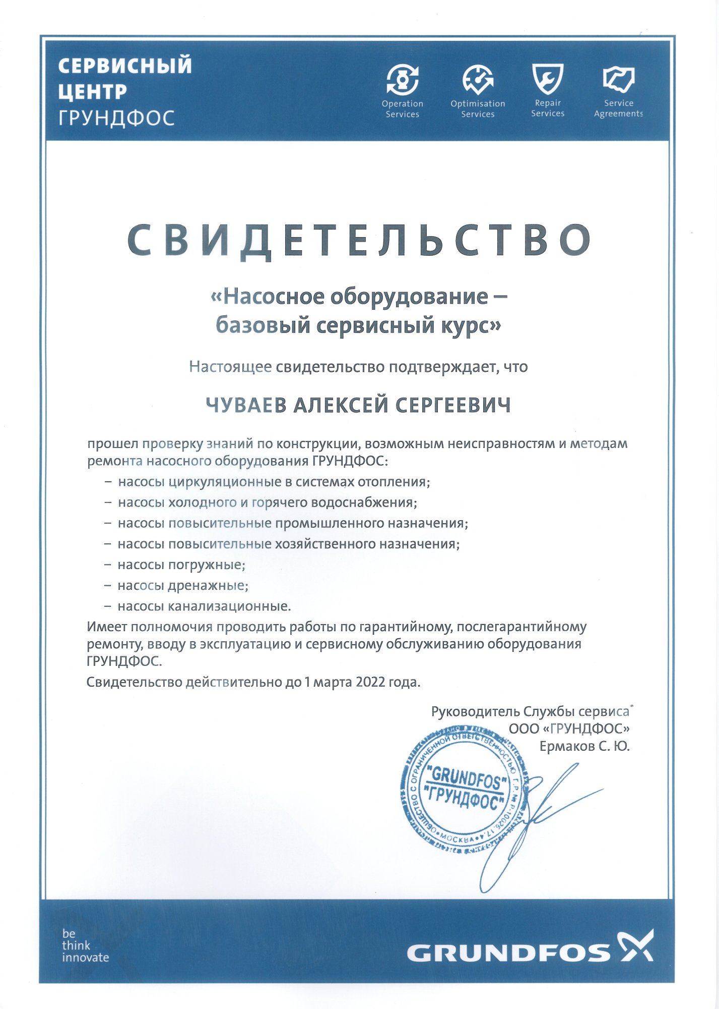 Сертификат Vandjord Преображенский Роман Владимирович