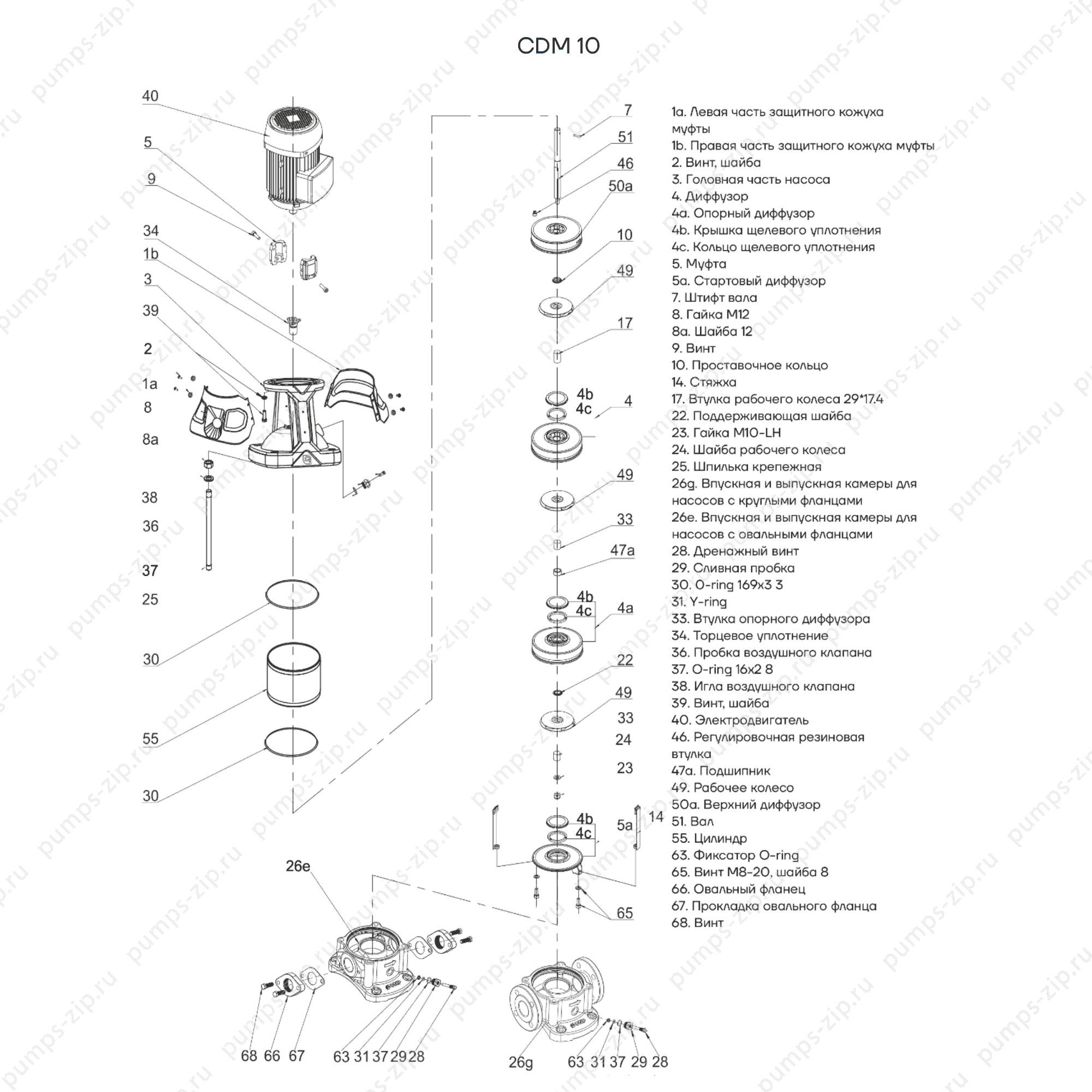 Головная часть насоса CNP CDM, применяется для сервисного обслуживания и ремонта многоступенчатых насосов «in-line» серии CDM10, 15, 20, мощностью 5.5-7.5кВт.