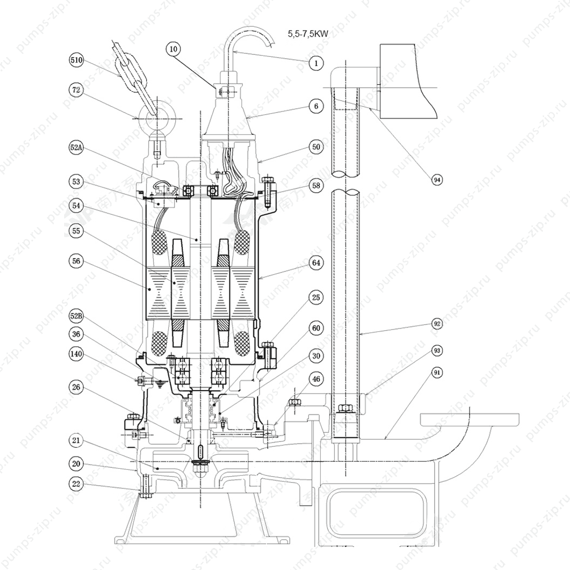 Манжетное уплотнение (сальник) для насоса применяется для сервисного обслуживания и ремонта погружных канализационных насосов CNP 150WQ250-14-18.5AC(I).